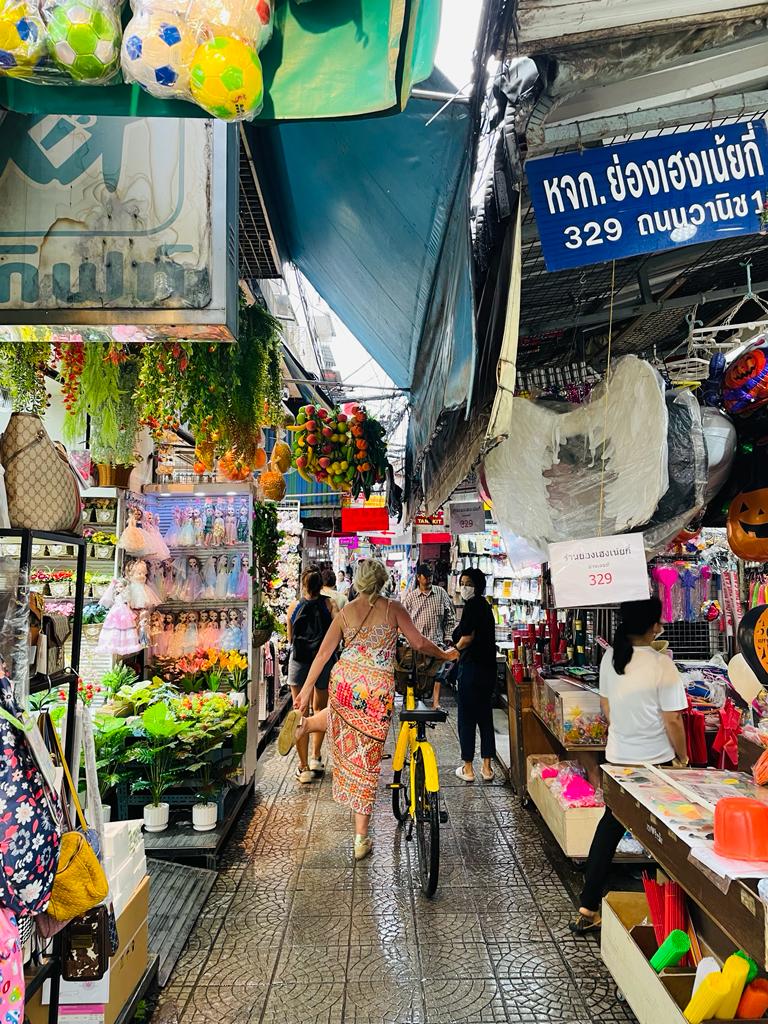 After a smooth night flight with EVA Air (think: napping, watching movies, and surprisingly tasty food), we land refreshed and curious in bustling Bangkok. And just like that, our journey full of surprises begins. Day one kicks off with a bike tour led by Co van Kessel. Bangkok by bike? Seriously, it’s the best way to see spots you’d never find otherwise. We weave through narrow alleys where locals hang laundry, pass markets filled with the sweet smell of ripe mangoes and fresh herbs. Then there’s Chinatown — a party for the senses. Picture sizzling woks, steaming noodle soups, and sweet treats you simply can’t resist. Every corner smells like adventure … or maybe garlic. A definite highlight: the flower and fruit market. Bursting with bright colors, scents so vivid you can almost taste them, and vendors selling their goods with huge smiles. Next stop: Wat Kanlaya, home to Luangpho To — a massive golden Buddha calmly watching over us. Just pause for a moment, take a deep breath in … and out. Then — hop back on my bike — into the wild, lively traffic chaos of the city. It’s hectic, sure, but that’s exactly what makes it so exciting. What an experience …
