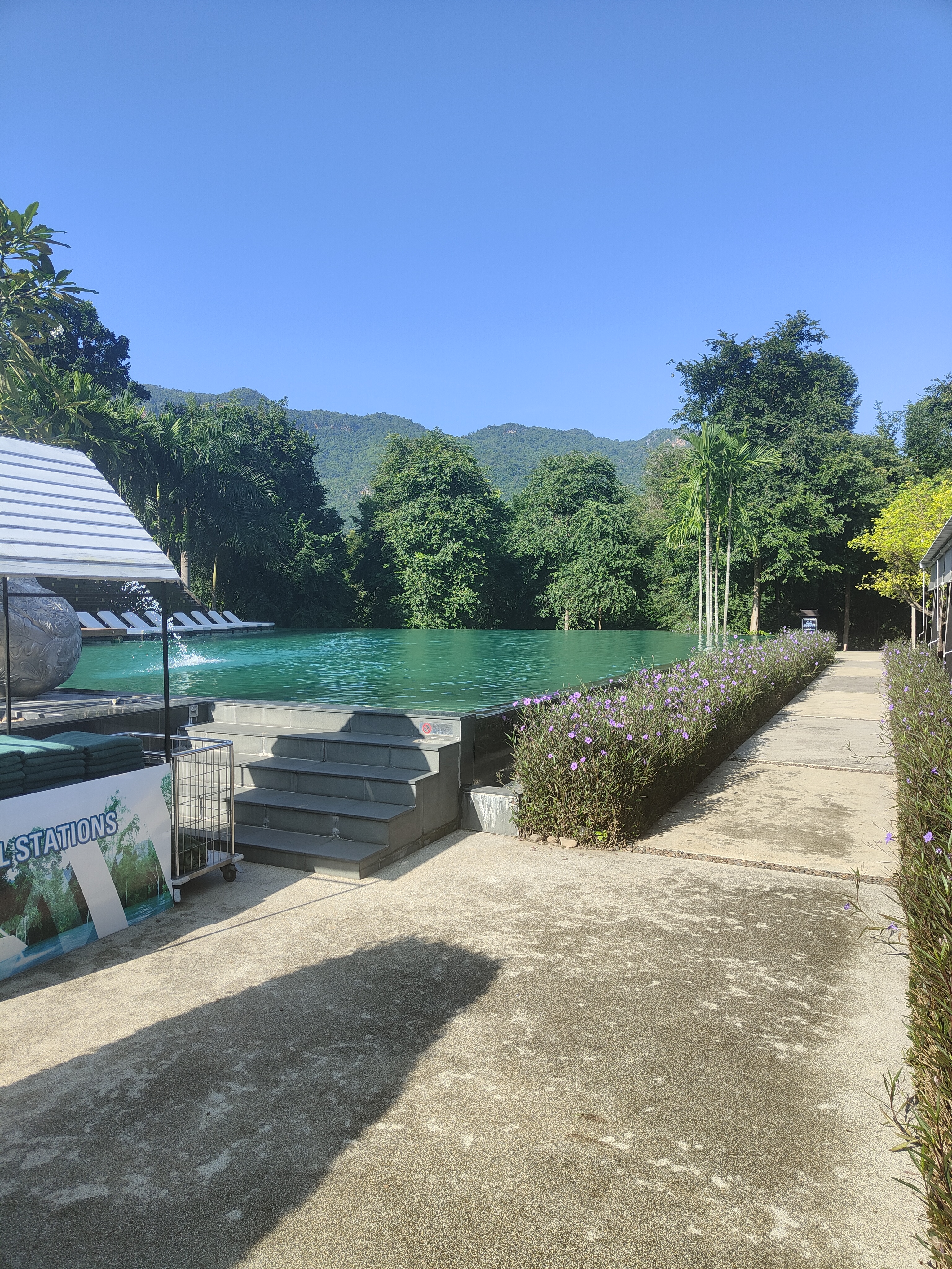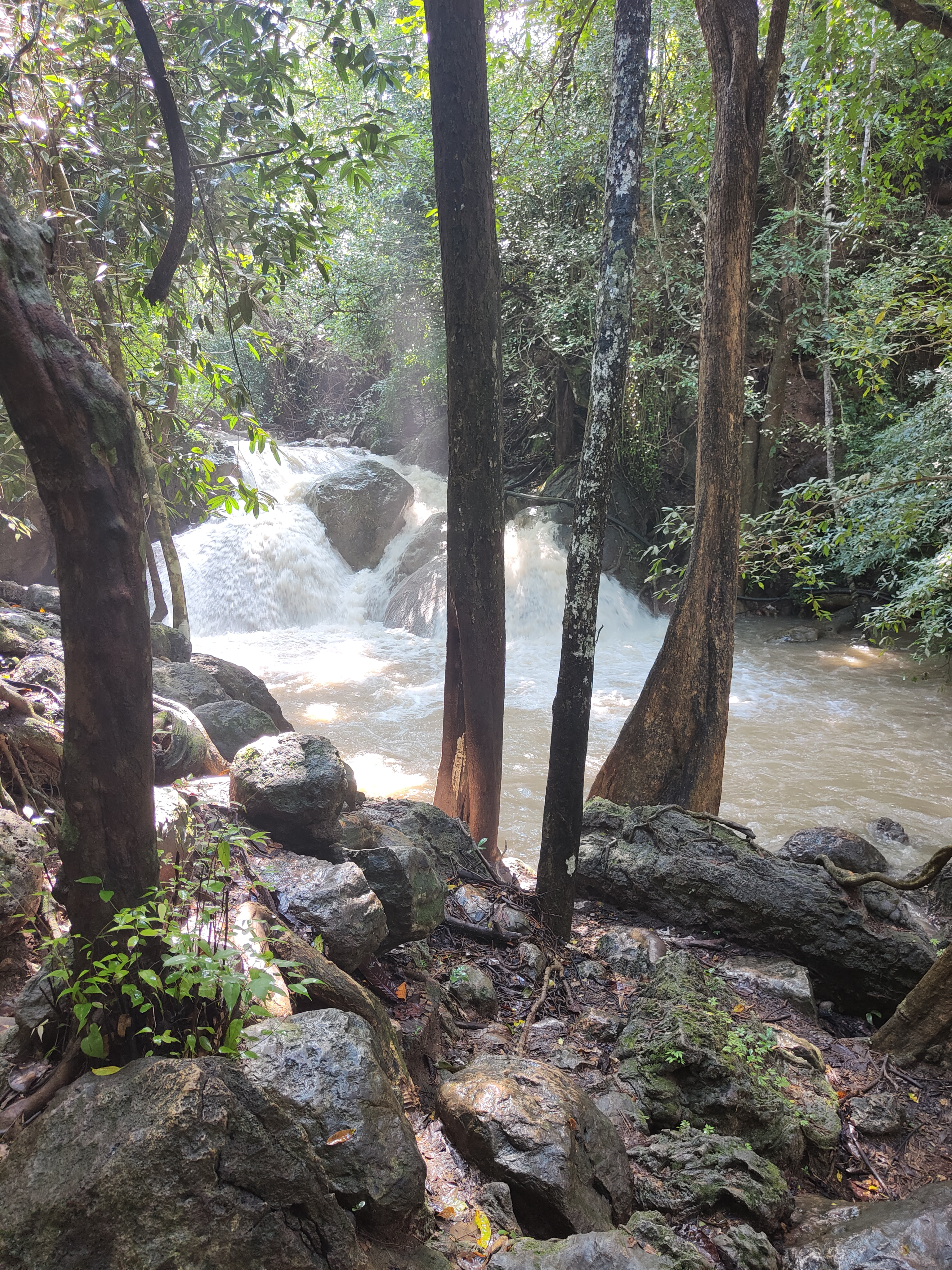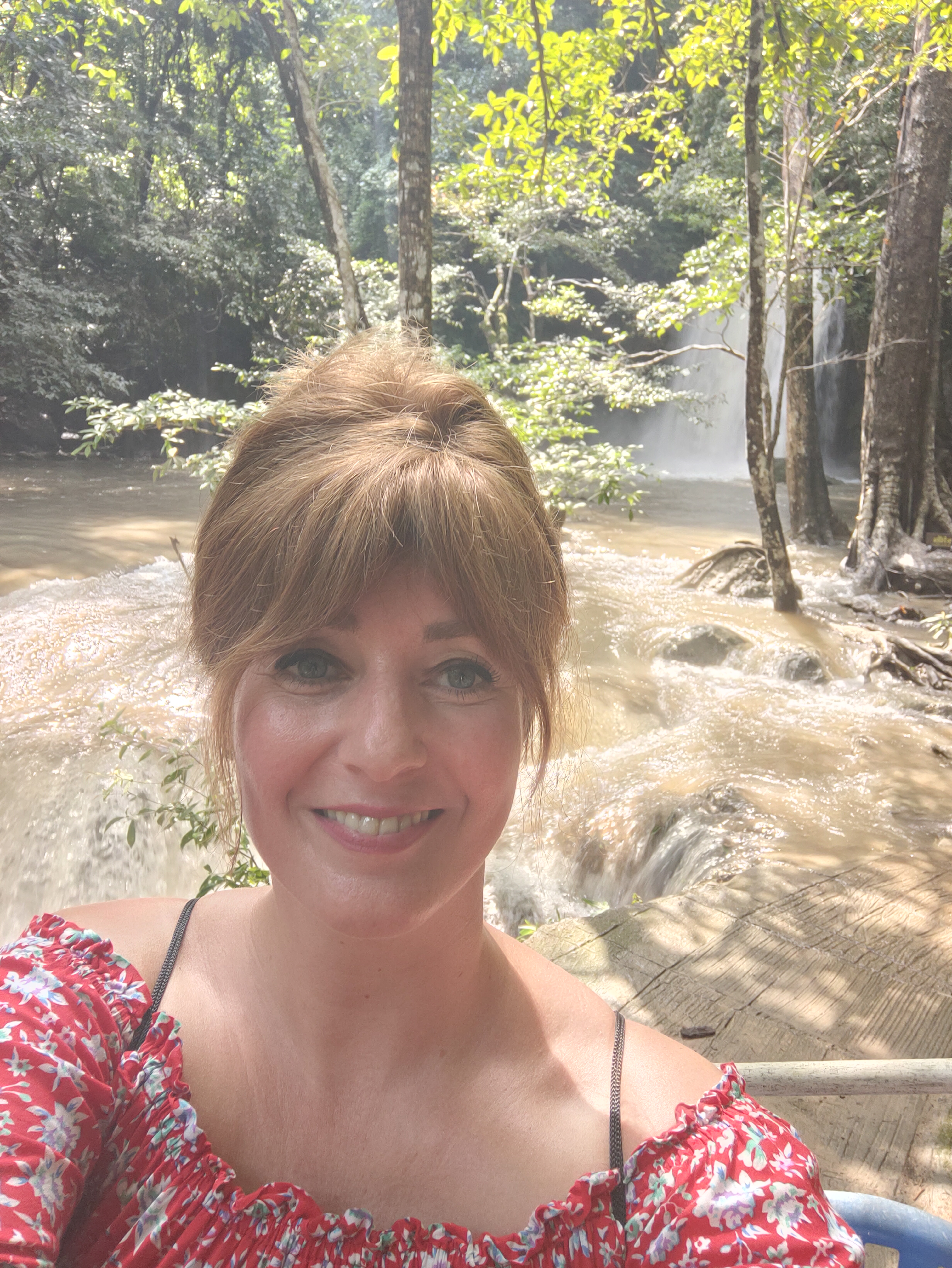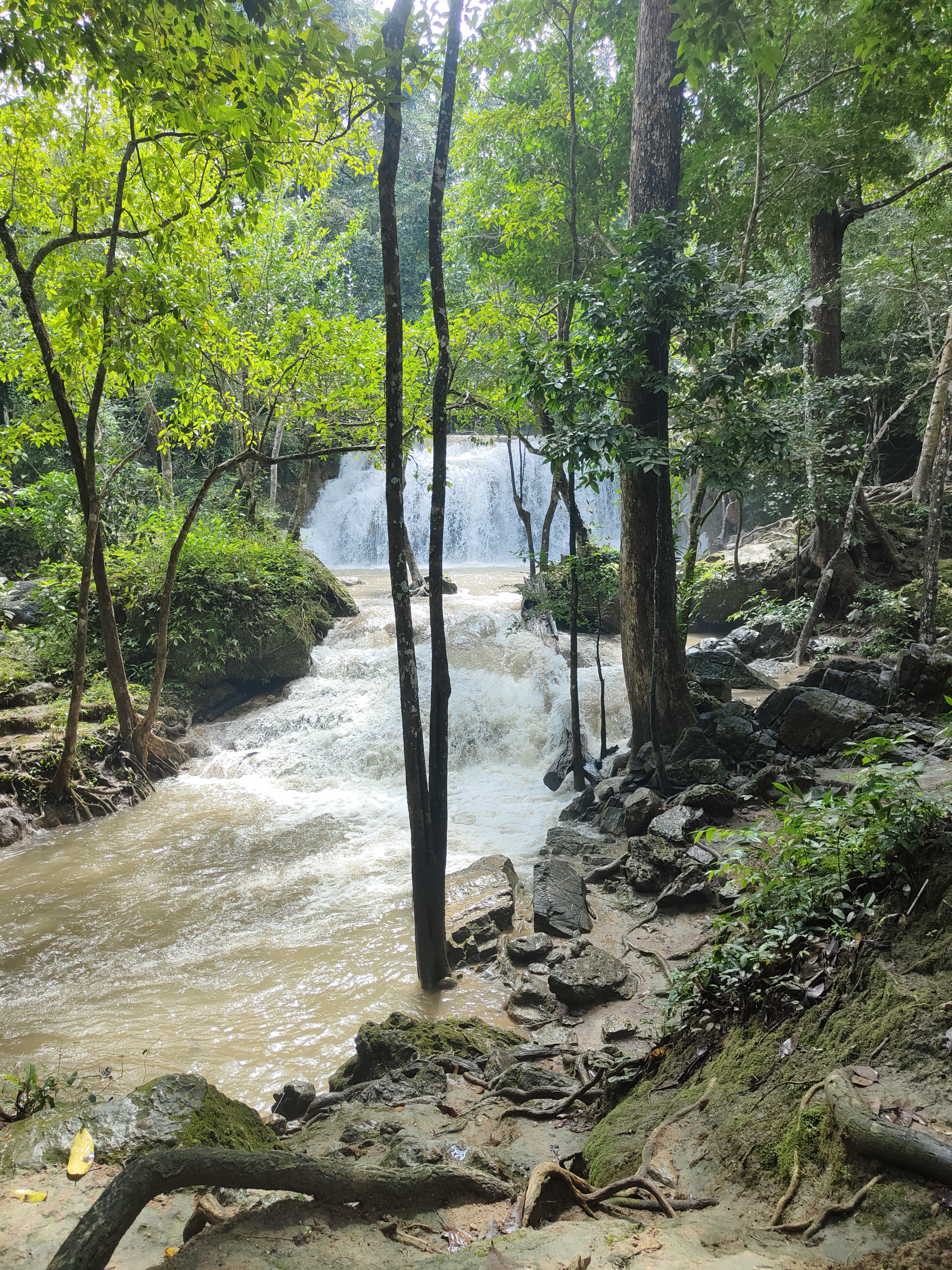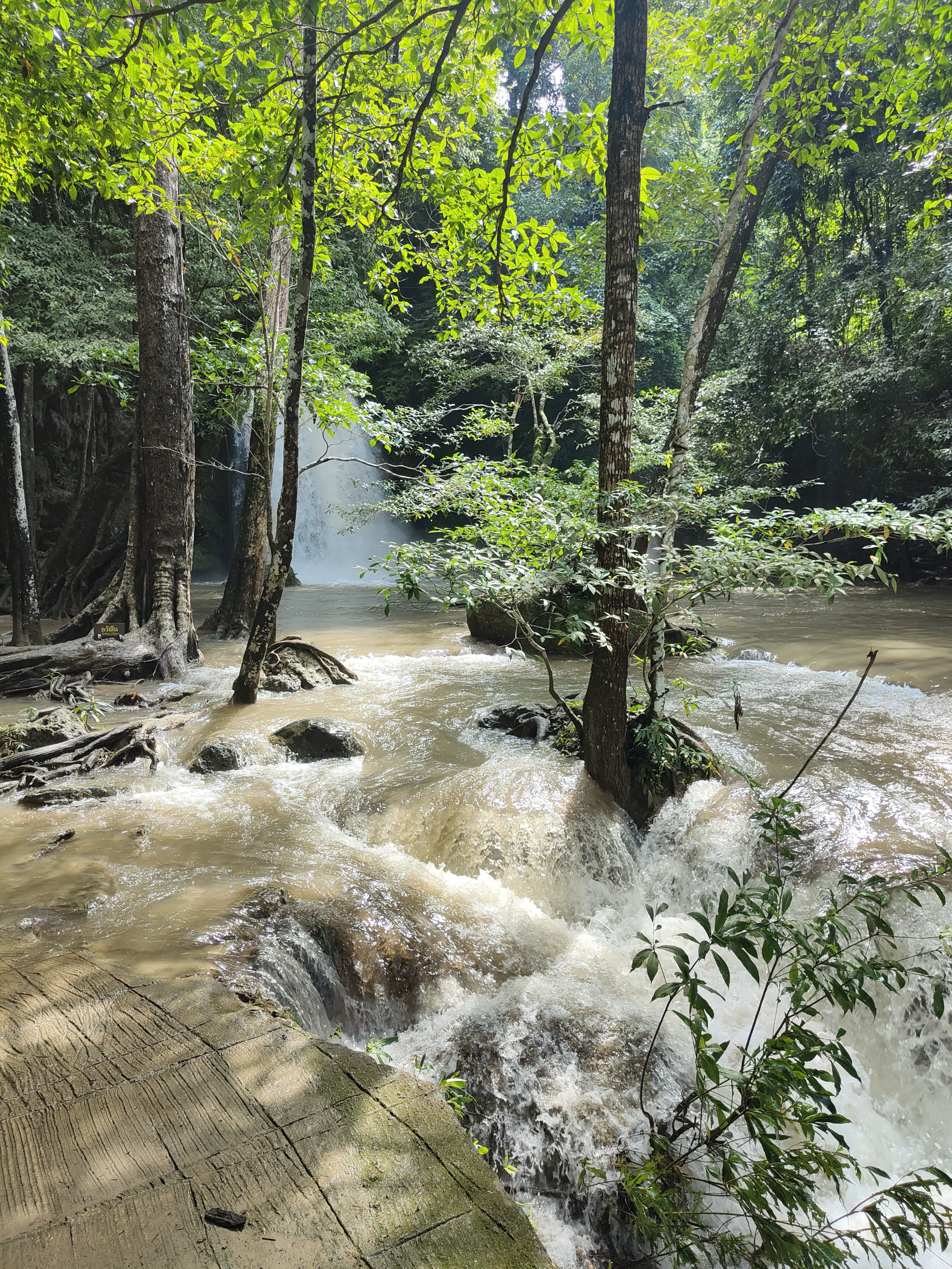 Seven-tiered waterfalls, clear water (well, not so much during the rainy season), and lush tropical greenery … Erawan National Park feels like a little slice of paradise. The moment we step onto the path, we’re surrounded by the soothing sounds of flowing water, birds singing, and leaves softly rustling in the breeze. The air is humid, filled with the fresh smell of earth and green plants, and bright butterflies flutter all around. We follow the winding trail alongside the waterfall, with each level offering something special. Unfortunately, our hike comes to a halt at the fourth tier because of the rainy season — the rest of the trail is too dangerous after days of heavy rain. It feels like a bit of a letdown at first. But when I look around, I soak in the calm that this place gives off. Nature isn’t here to rush us forward, but to let us enjoy the moment. And that’s exactly what I do.