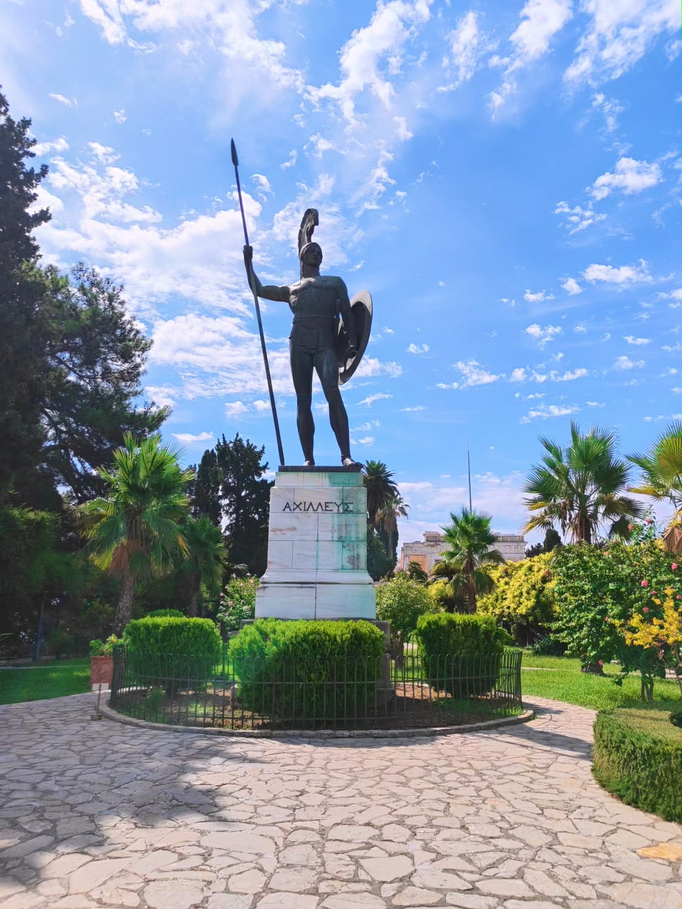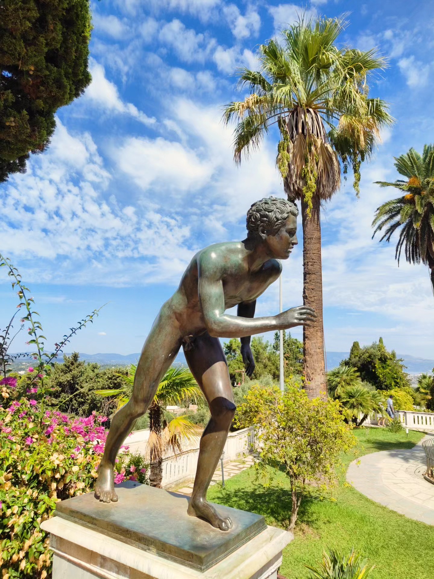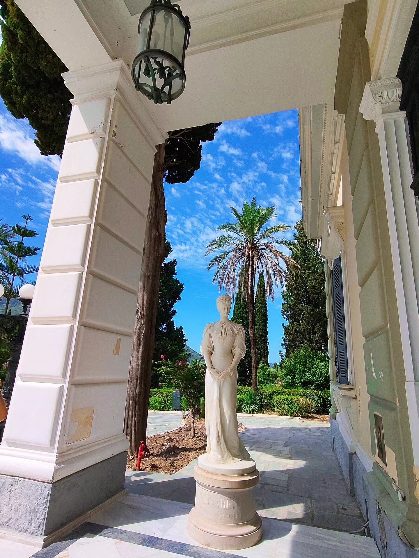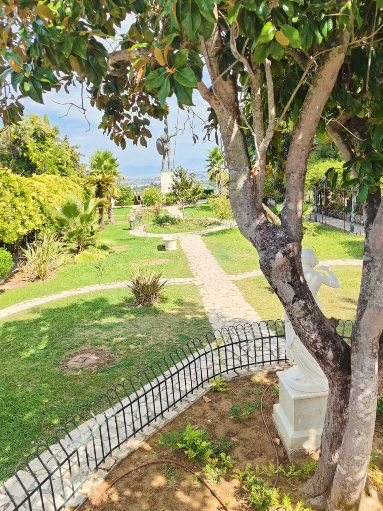 The Achilleion is the summer palace that once belonged to Empress Sisi of Austria. While the interior is currently under renovation, the gardens more than make up for it. You wander among the statues of Achilles, feeling like a Greek goddess yourself—until you nearly trip over your own feet and almost topple a centuries-old sculpture. Oops … From the terrace, the view stretches over a coastline so stunning you can understand why Sisi sought refuge here: peace, beauty, and vistas that make you drift away for a little while.